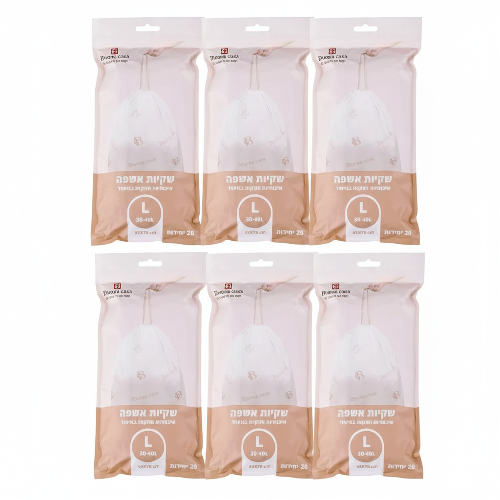 - 6 מארזים של 20 יח׳ שקיות אשפה L