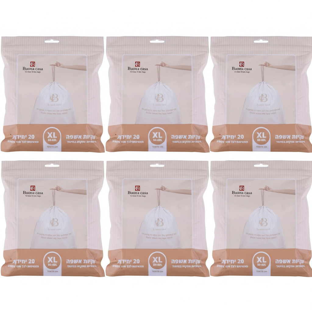 - 6 מארזים של 20 יח׳ שקיות אשפה XL
