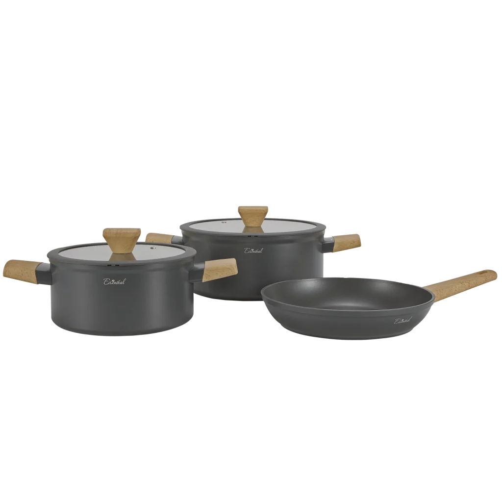 סט 4 חלקים- סוטאז׳ 36 ס״מ+ מחבת 28 ס״מ צבע אבן, מסדרת Crown