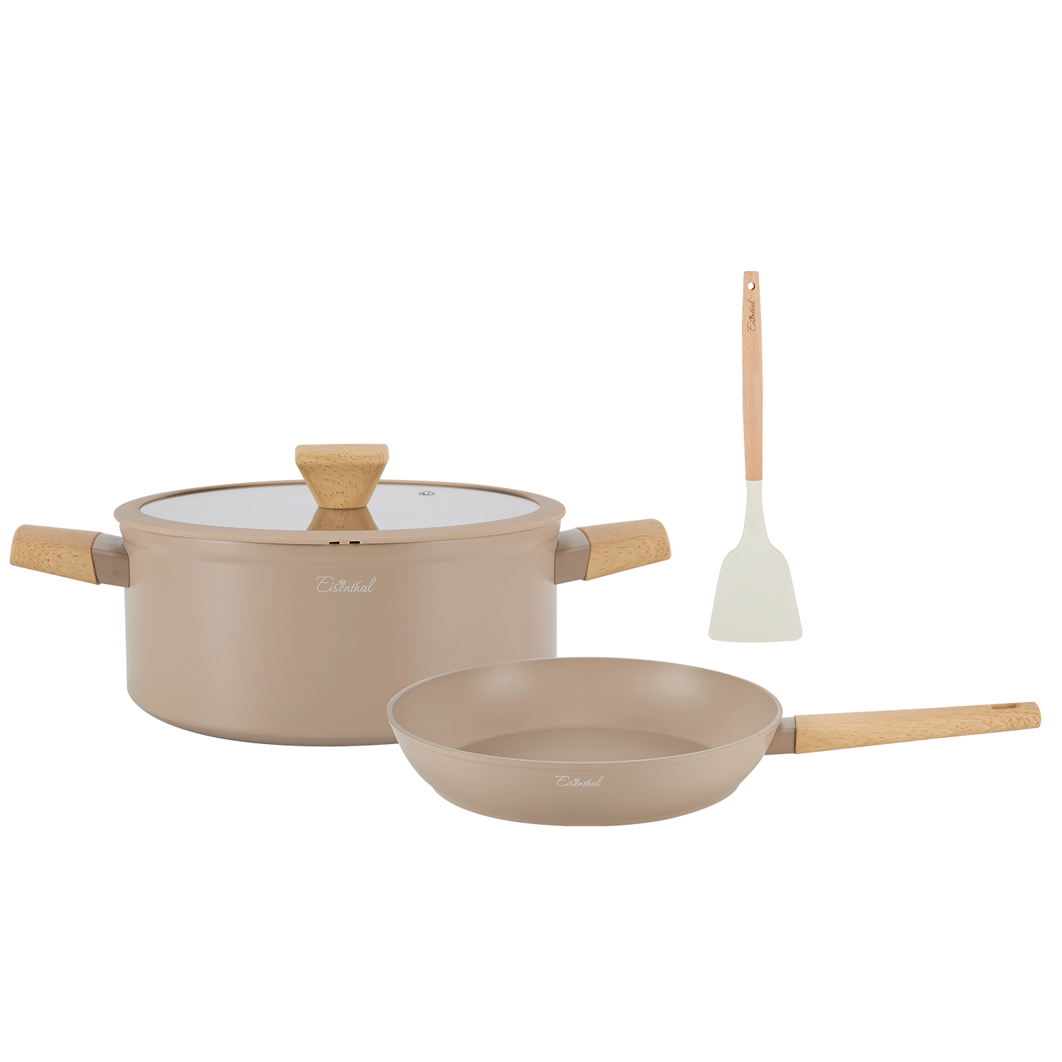 הסט בעל עיצוב וינטג׳ ייחודי עם גימורי סיליקון וידיות דמוי עץ רכות למגע ומבודדות חום. כלי הבישול שלנו מיוצרים מאלומיניום מובחר, בתהליך יציקה רב שכבתי ההופך אותם לחזקים ועמידים במיוחד, בעלי מראה עכשווי, נוחים לשימוש וקלים לניקוי. גוף האלומיניום העבה מבטיח חלוקת חום שווה ויעילה, לקבלת תוצאות בישול מרביות וחסכון בזמן ואנרגיה.