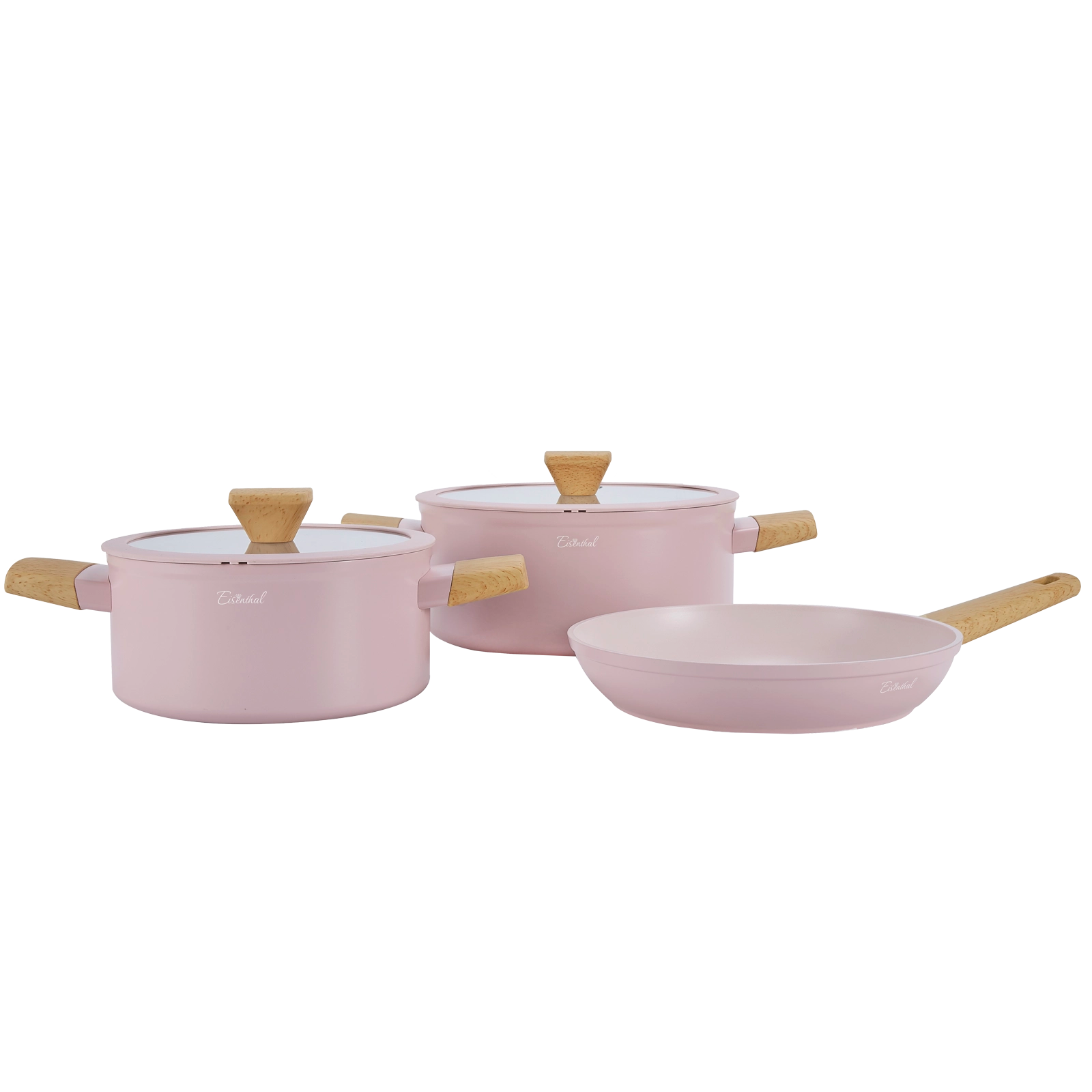 הסט בעל עיצוב וינטג׳ ייחודי עם גימורי סיליקון וידיות דמוי עץ רכות למגע ומבודדות חום. כלי הבישול שלנו מיוצרים מאלומיניום מובחר, בתהליך יציקה רב שכבתי ההופך אותם לחזקים ועמידים במיוחד, בעלי מראה עכשווי, נוחים לשימוש וקלים לניקוי. גוף האלומיניום העבה מבטיח חלוקת חום שווה ויעילה, לקבלת תוצאות בישול מרביות וחסכון בזמן ואנרגיה.